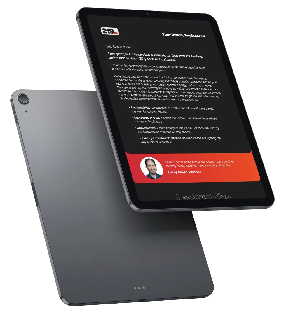 219 is a product engineering firm with over two decades of experience, combining mechanical, electrical, and software disciplines to make clients’ visions a reality.